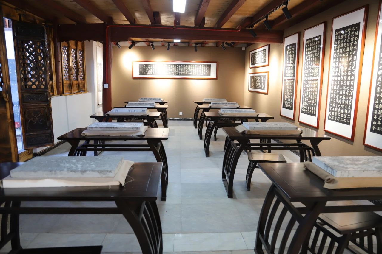 在方树梅故居前,爷爷奶奶们纷纷在方树梅先生的汉白玉雕像前合影,仔细了解着先生的生平,在蓝天白云下,那清瘦的身躯,提着一箱书稿,向我们走来,格外引人注目。来到方树梅纪念馆,村委会的工作人员热情地为爷爷奶奶们介绍这里的历史和典故。纪念馆主体设在方家村方家祠堂,由方氏祠堂和诵芬楼两栋建筑组成,分陈列室,书画、拓片体验区和研学区,占地890平方米,祠堂距今已有600余年的历史,曾在1919年进行修复重建。爷爷奶奶们推门而入,仿佛踏入了时光隧道,前殿入门两侧的书架上,整齐摆放着方树梅参与整编、纂修的《云南丛书》《新纂云南通志》等200余册图书。南厢房是拓片展示、体验区,里面的碑刻都是按照南荔草堂的碑文,做了多块碑刻的仿品,给访客提供拓片体验活动。北厢房则将方树梅所收藏的一批近代手札装裱整理后进行陈列展示。而陈列室采用的是“一本书”的设计风格,分“晋宁方氏·家风家训”“滇南硕儒·方氏人才”“文化先贤·梅文士圈”“爱滇好古·北游搜访”“南荔黄卷·学山遗墨”“梅影书声·笔墨丹青”“泽被桑梓·嘉惠后学”7个区域,详细展示了方树梅先生的家族、个人经历和学术成就。