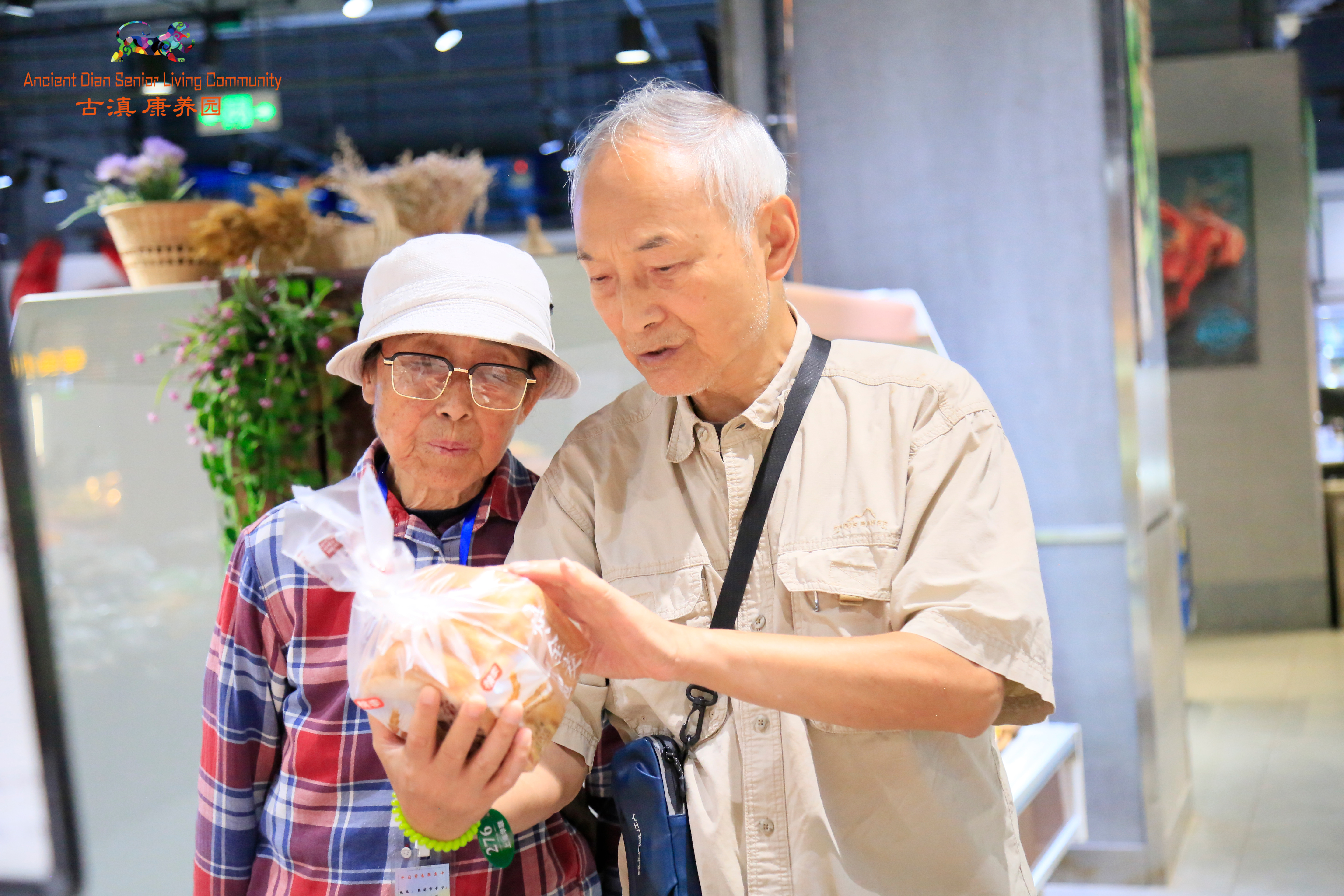 抵达七彩云南第壹城后,爷爷奶奶们像快乐的孩子般,三三两两结伴而行,开启“采购模式”:有的先逛服装店,慢慢挑衣物、比划外套、互提建议;更多人进超市,蔬菜区轻拂菜叶选青菜、萝卜、土豆,肉类区挑肥瘦相间的肉、里脊或排骨,水果区闻果香、分享技巧选苹果、橙子、葡萄,日用品区比洗衣液、洗洁精价格,零食区拿饼干坚果念叨给孙辈带。全程他们脚步不慌却有活力,边选边聊趣事、互帮拎袋,简单挑选与轻松对话让购物格外温馨。整个购物过程中,爷爷奶奶们的脚步虽不匆忙,却充满了活力。他们一边挑选商品,一边畅快聊天,分享着生活中的趣事,偶尔还会帮同伴拎一下购物袋,互相照顾。简单的挑选、轻松的对话,让原本平常的购物变得格外温馨。 当大家提着满满当当的购物袋走出超市时,脸上都洋溢着满足的笑容。这份满载而归的喜悦,不仅来自于手中的商品,更来自于与同伴相伴的快乐时光。对于古滇康养园的爷爷奶奶们来说,这次七彩云南第壹城的购物之旅,不仅仅是一次简单的采购,更是给平淡的生活增添了一抹亮色,让生活有了不同的味道 —— 那是温馨、快乐与幸福交织的味道。
